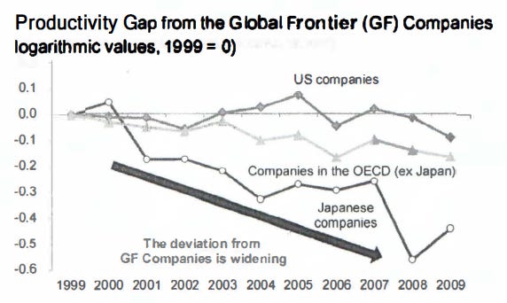 Let’s see why Japan is underperforming. A country’s productivity rises in four ways:
