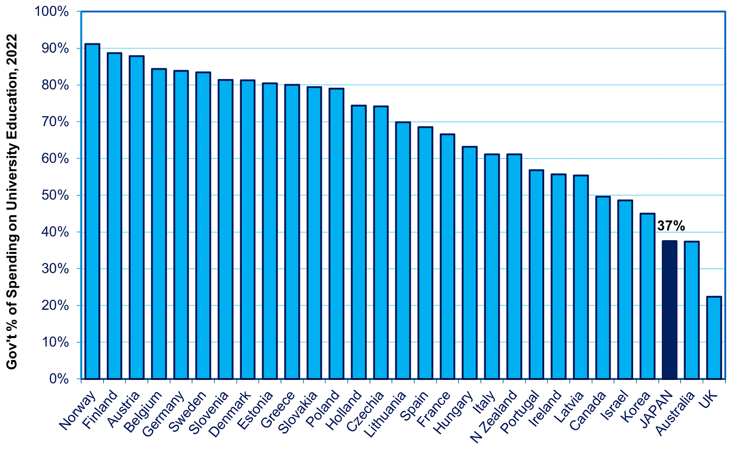 Yes, nearly half of all Japanese aged 25 to 34 have college degrees, more than in 30 other OECD countries. However, when the half that gets to go is determined, not by their ability but by their family’s income, that hurts economic growth, not to mention the smart students who lose out.